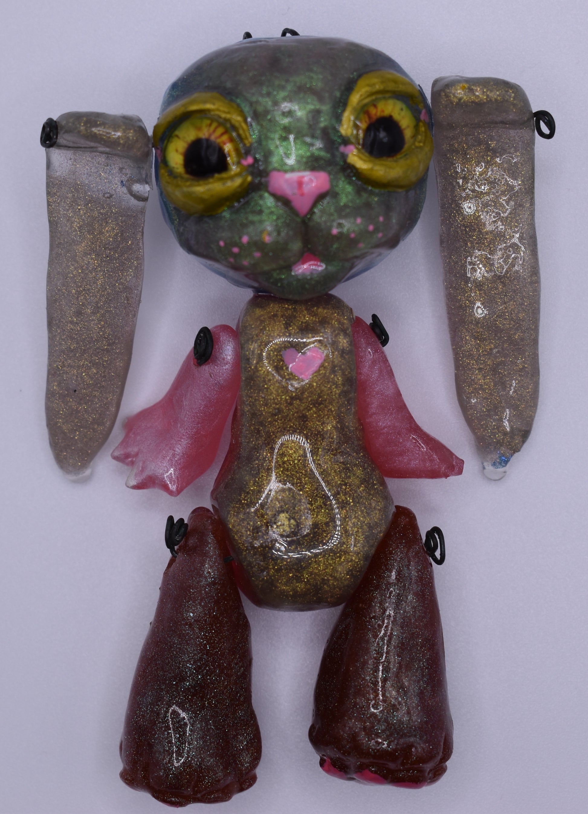 Bring joy and charm to your wardrobe with this delightful Franken Bunny! Made of resin and available as either a doll or necklace, it's sure to become an instant classic. Add a hint of whimsy to your look and show your unique style!