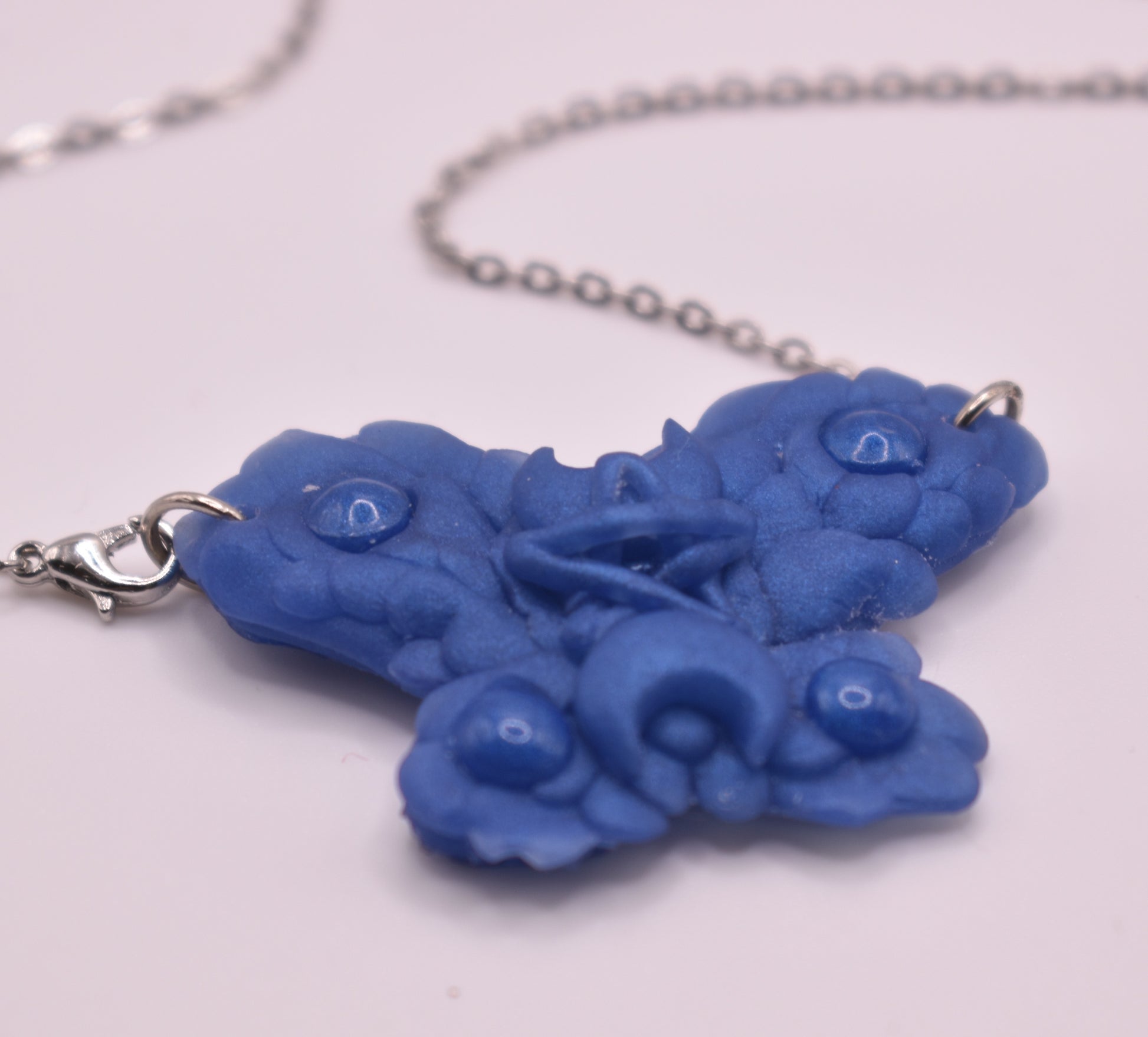 All of bitprincess jewelry is one of a kind. She creates clay versions, makes a mold of the shape and casts it in resin. The result has finishing touches applied like sanding and adding a sterling silver chain and clasps or earring hooks. They are infused with her love for the craft and enthusiasm for you, the wearer!