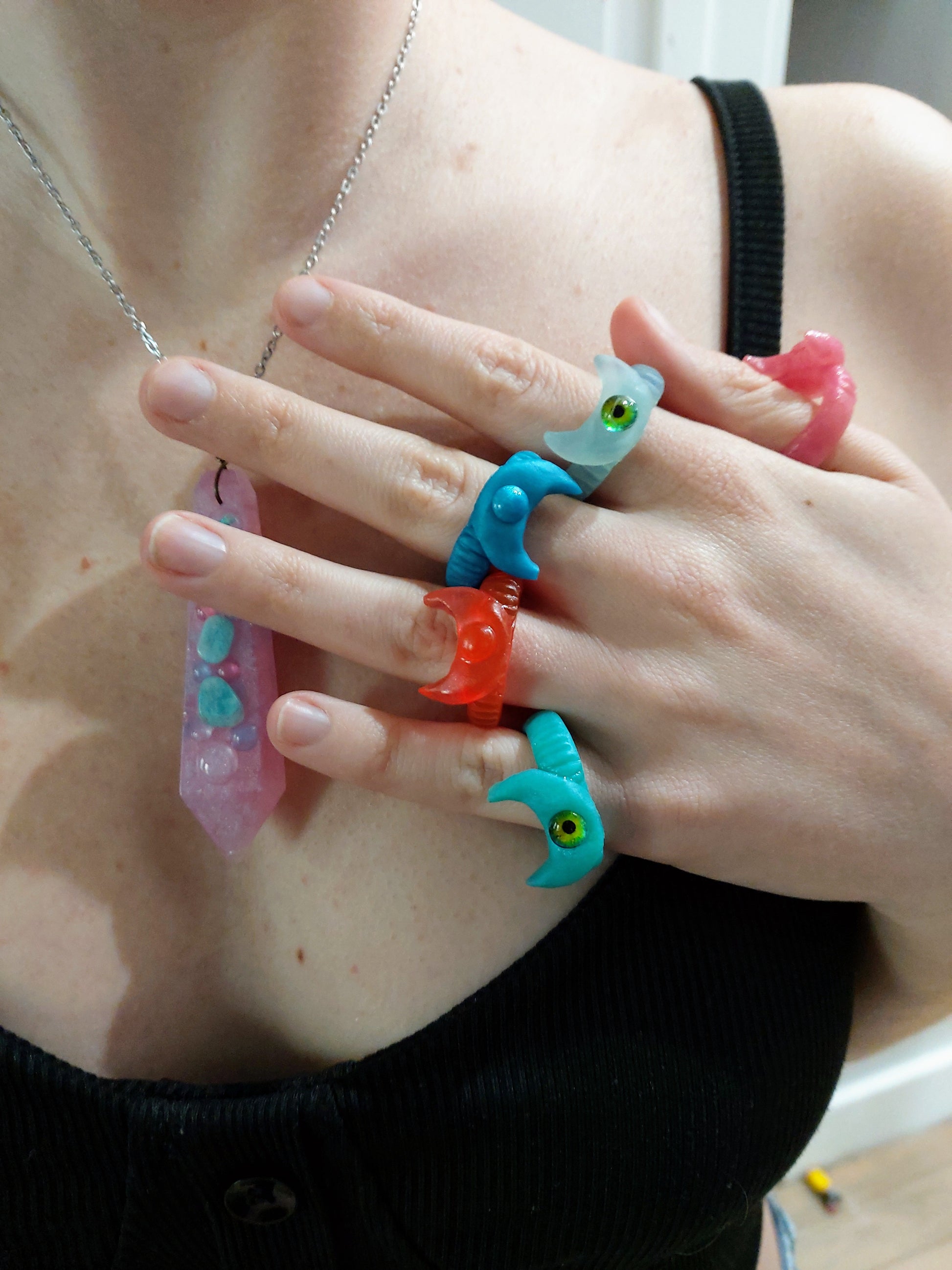 The moon ring is a simple and whimsical piece which reminds me of my child hood. I would have loved to get one of these in a cereal box or barbie play set!