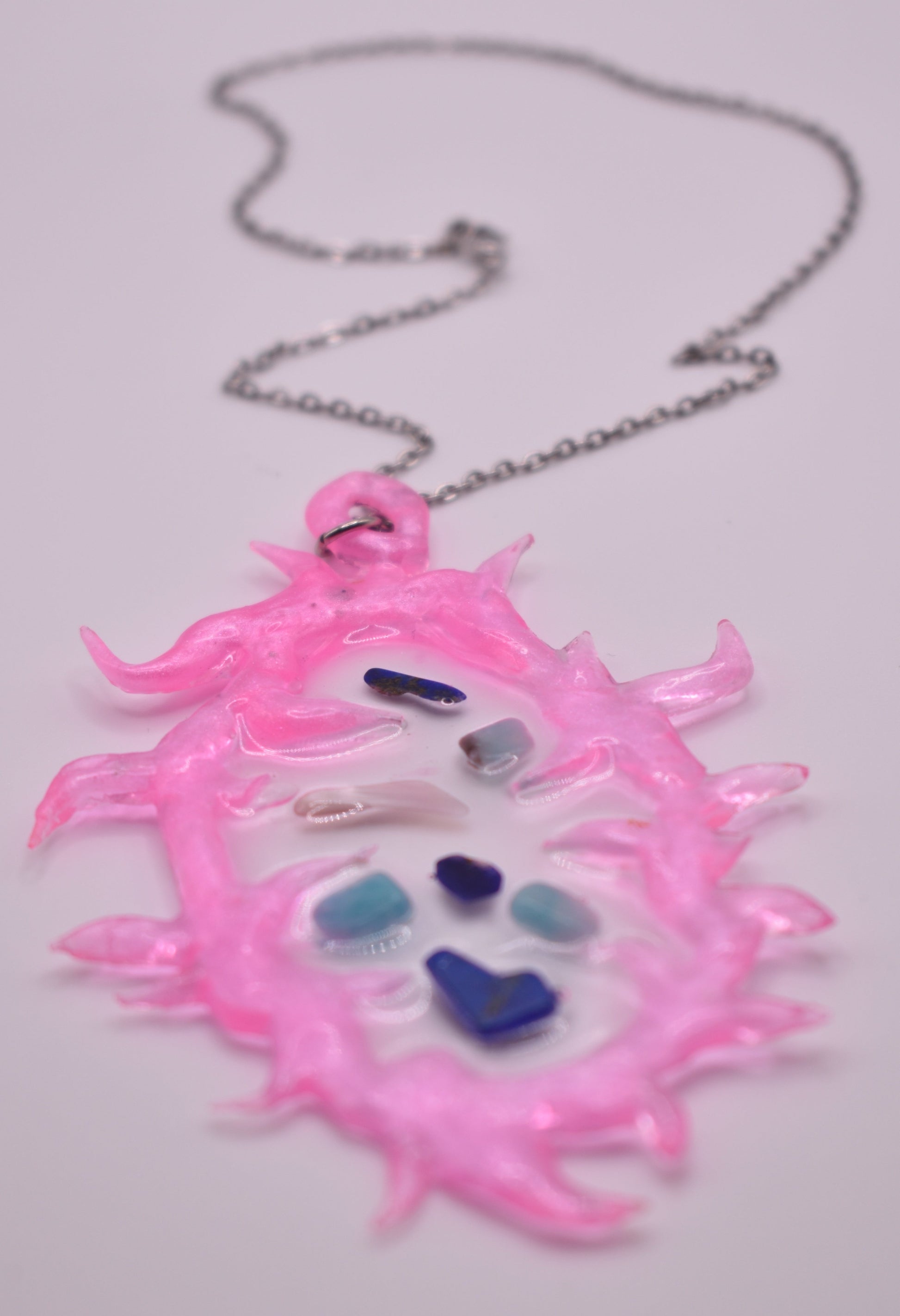 All of bitprincess jewelry is one of a kind. She creates clay versions, makes a mold of the shape and casts it in resin. The result has finishing touches applied like sanding and adding a sterling silver chain and clasps or earring hooks. They are infused with her love for the craft and enthusiasm for you, the wearer!