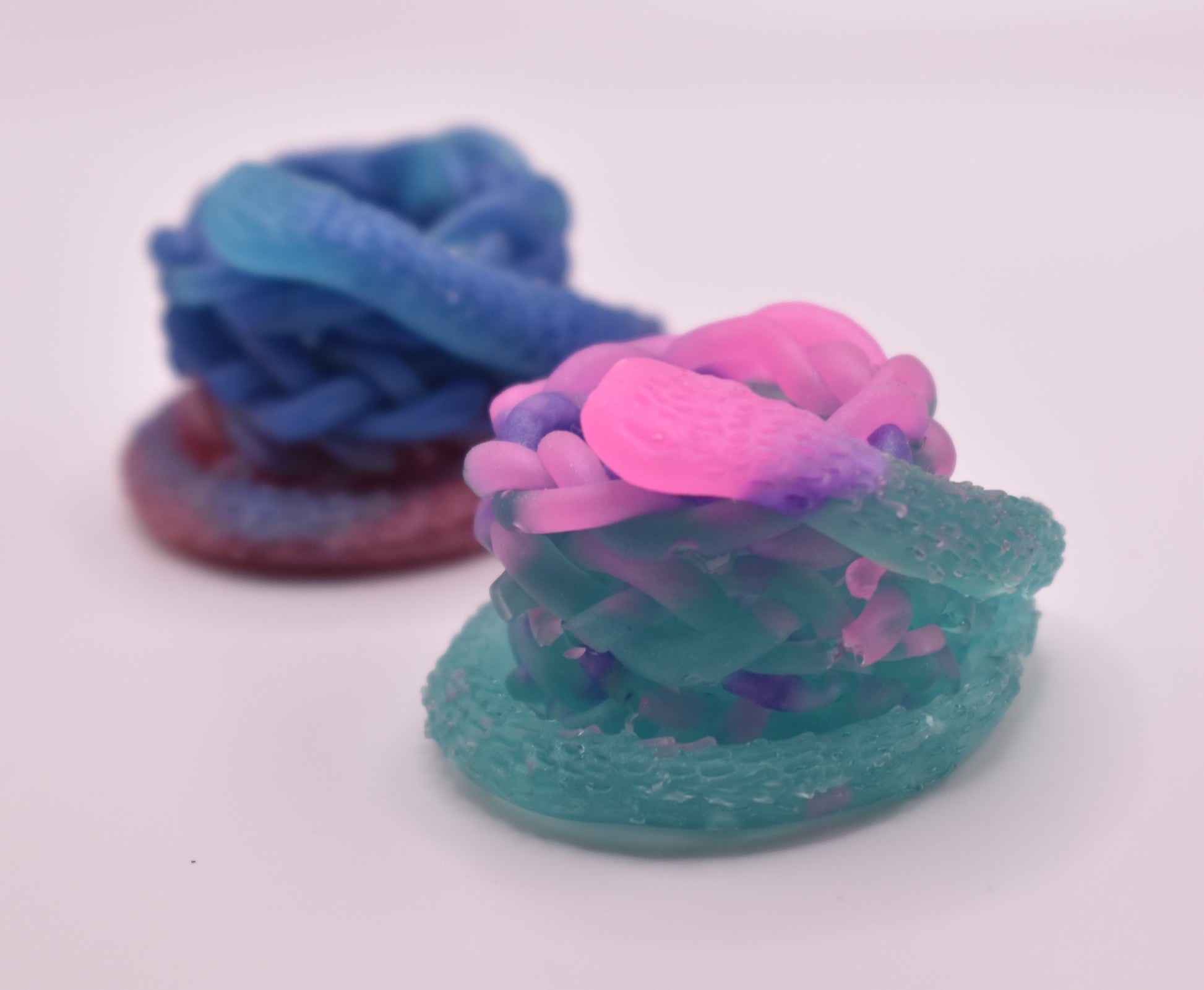 All of bitprincess jewelry is one of a kind. She creates clay versions, makes a mold of the shape and casts it in resin. The result has finishing touches applied like sanding and adding a sterling silver chain and clasps or earring hooks. They are infused with her love for the craft and enthusiasm for you, the wearer!
