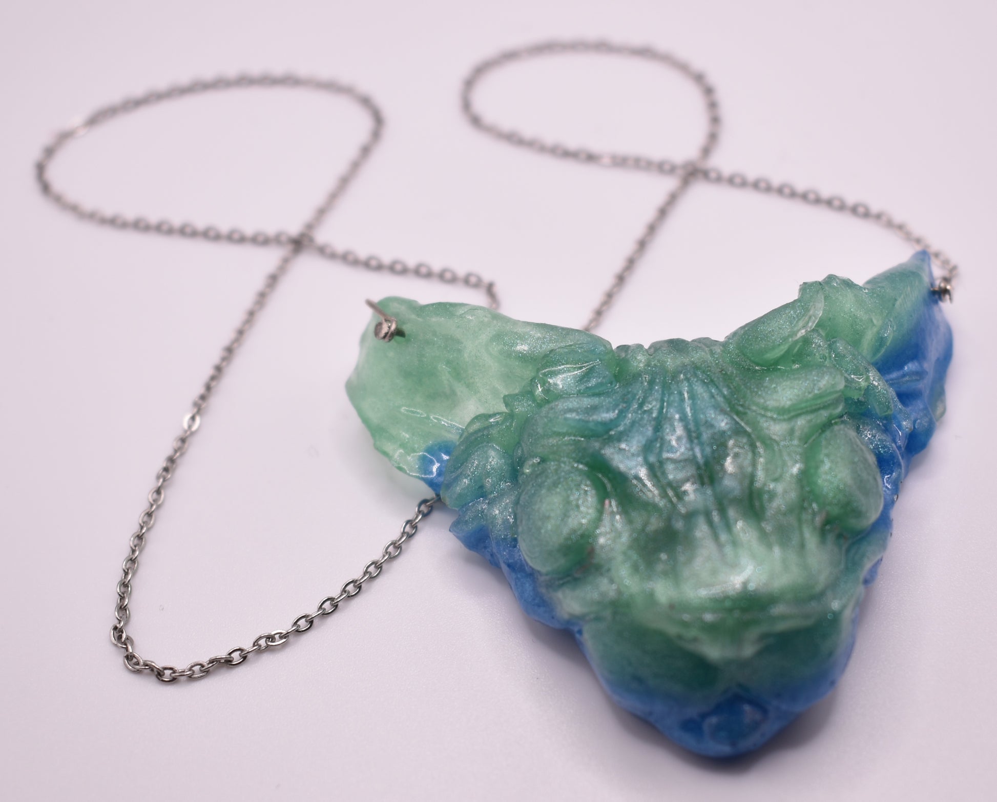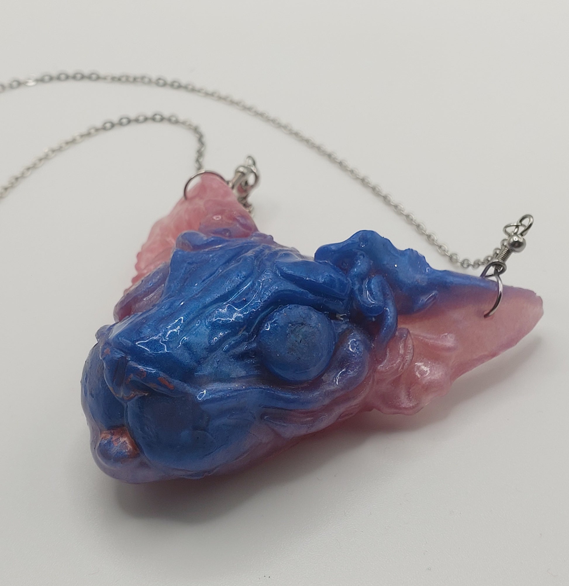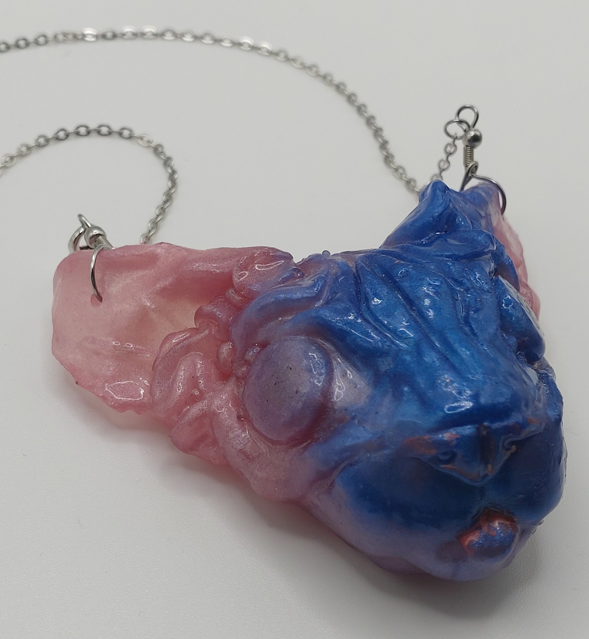 All of bitprincess jewelry is one of a kind. She creates clay versions, makes a mold of the shape and casts it in resin. The result has finishing touches applied like sanding and adding a sterling silver chain and clasps or earring hooks. They are infused with her love for the craft and enthusiasm for you, the wearer!