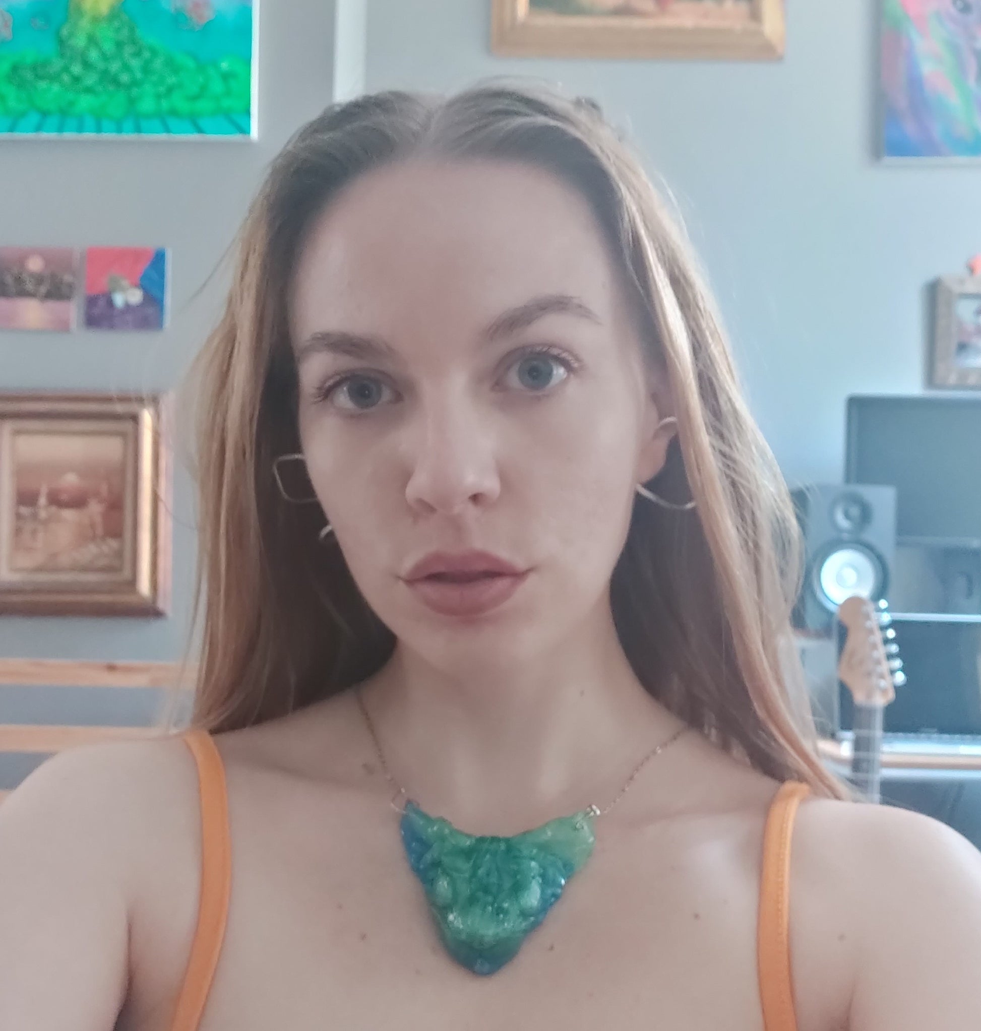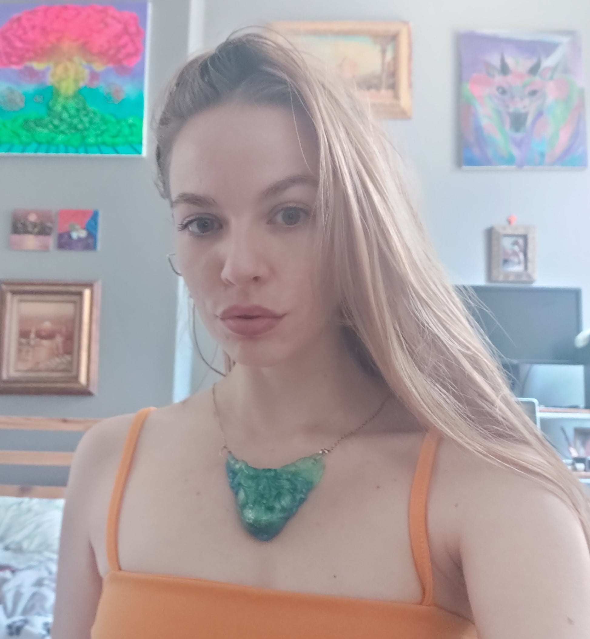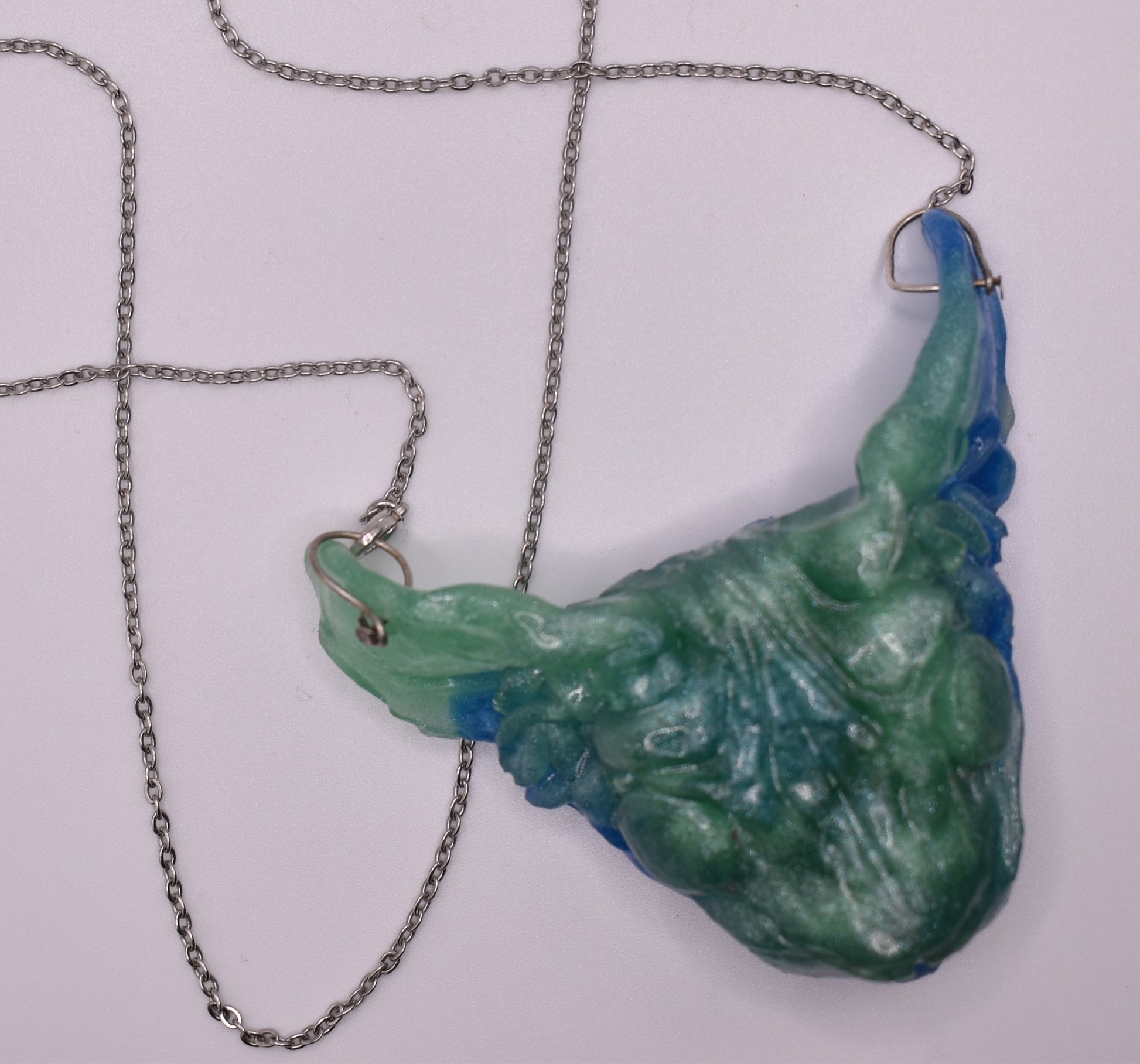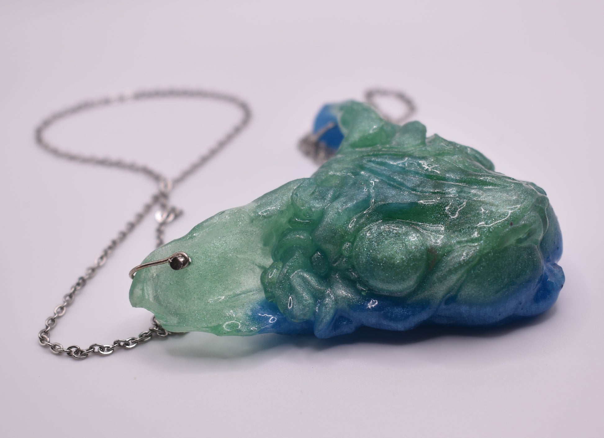 All of bitprincess jewelry is one of a kind. She creates clay versions, makes a mold of the shape and casts it in resin. The result has finishing touches applied like sanding and adding a sterling silver chain and clasps or earring hooks. They are infused with her love for the craft and enthusiasm for you, the wearer!