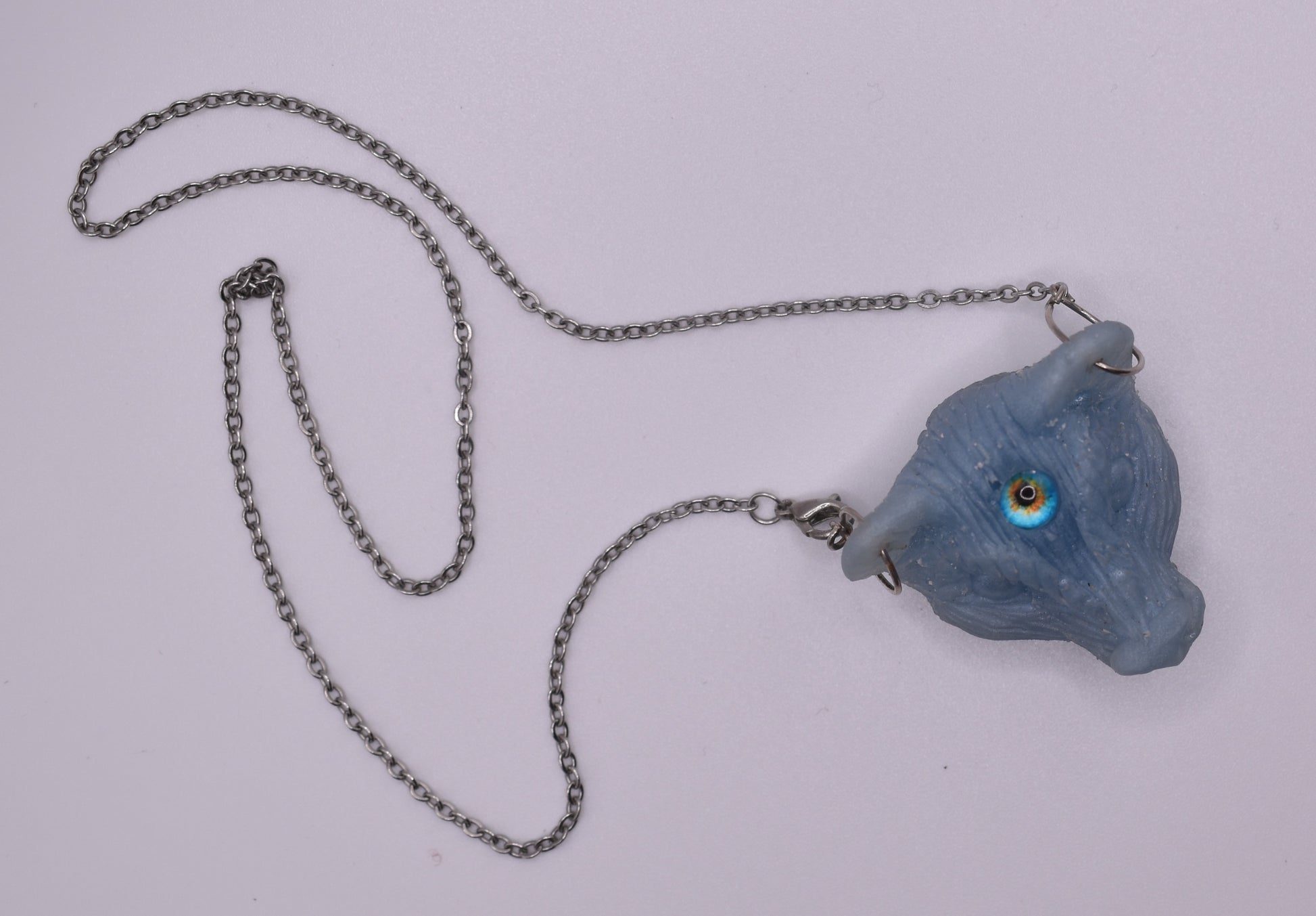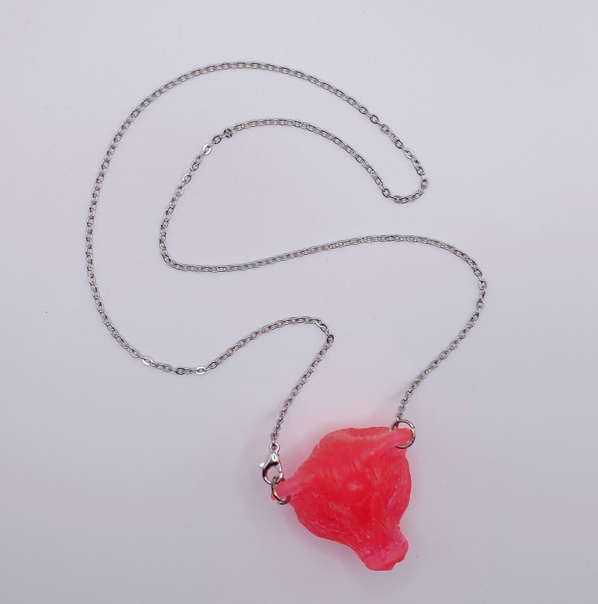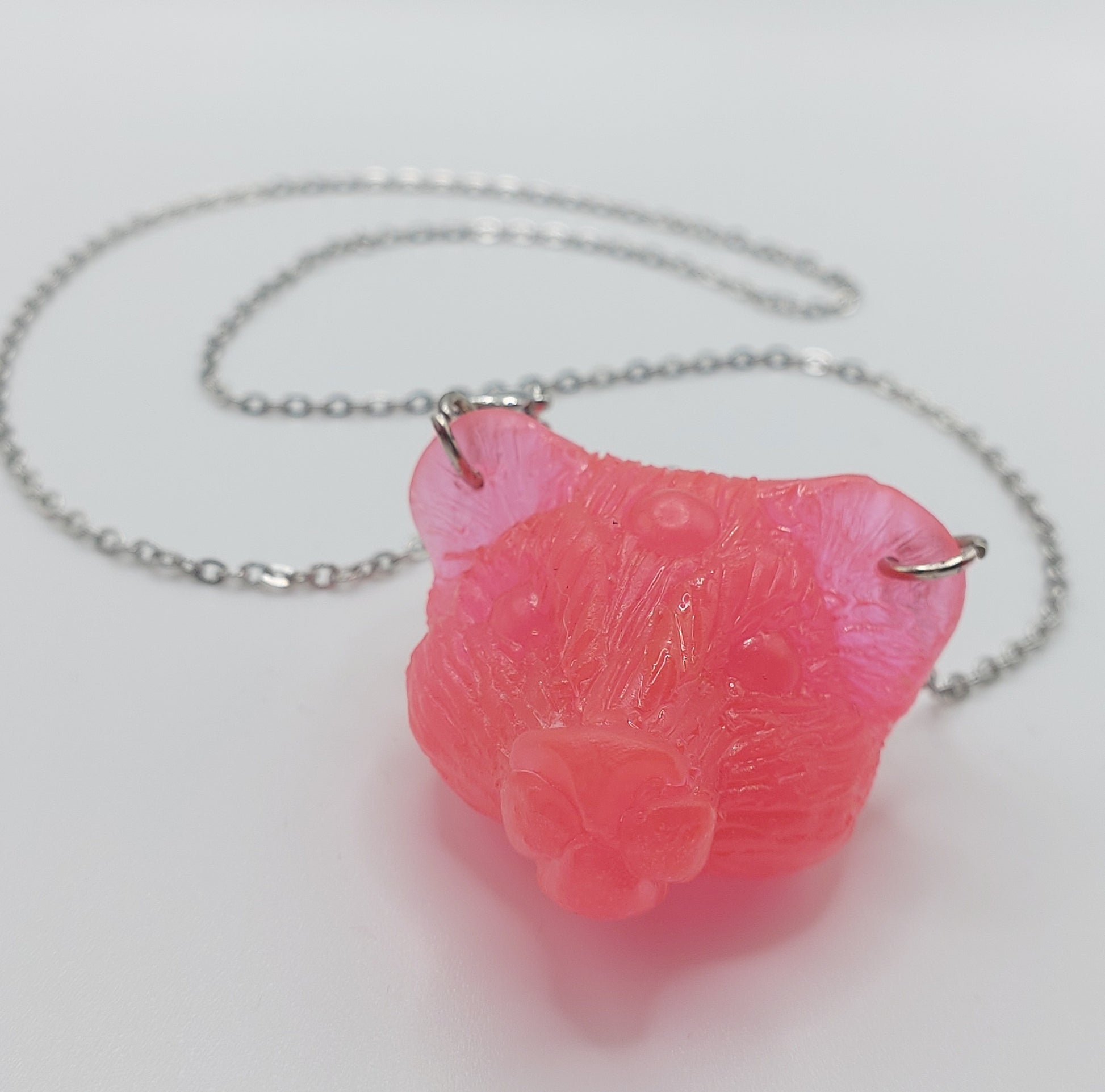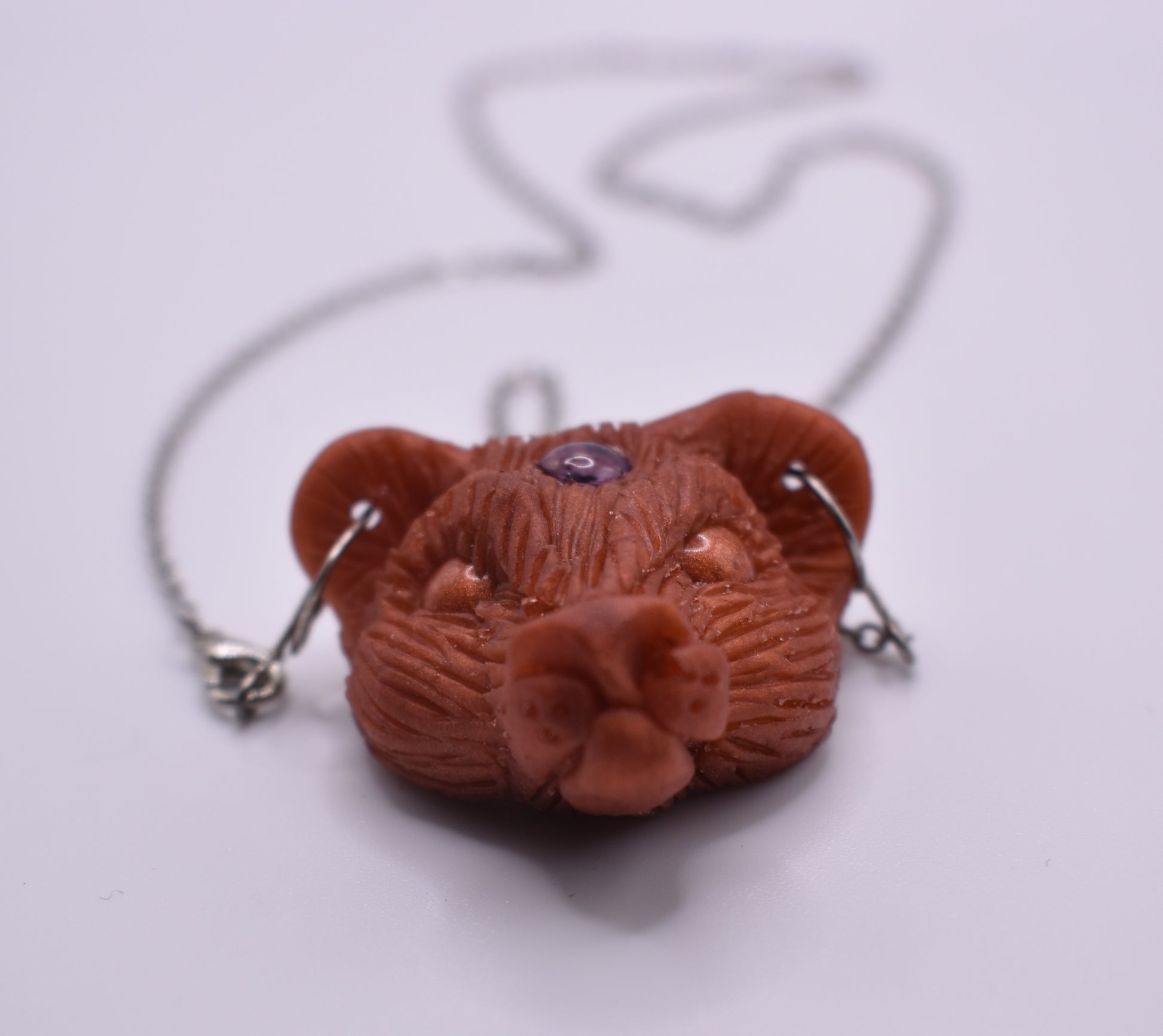 All of bitprincess jewelry is one of a kind. She creates clay versions, makes a mold of the shape and casts it in resin. The result has finishing touches applied like sanding and adding a sterling silver chain and clasps or earring hooks. They are infused with her love for the craft and enthusiasm for you, the wearer!