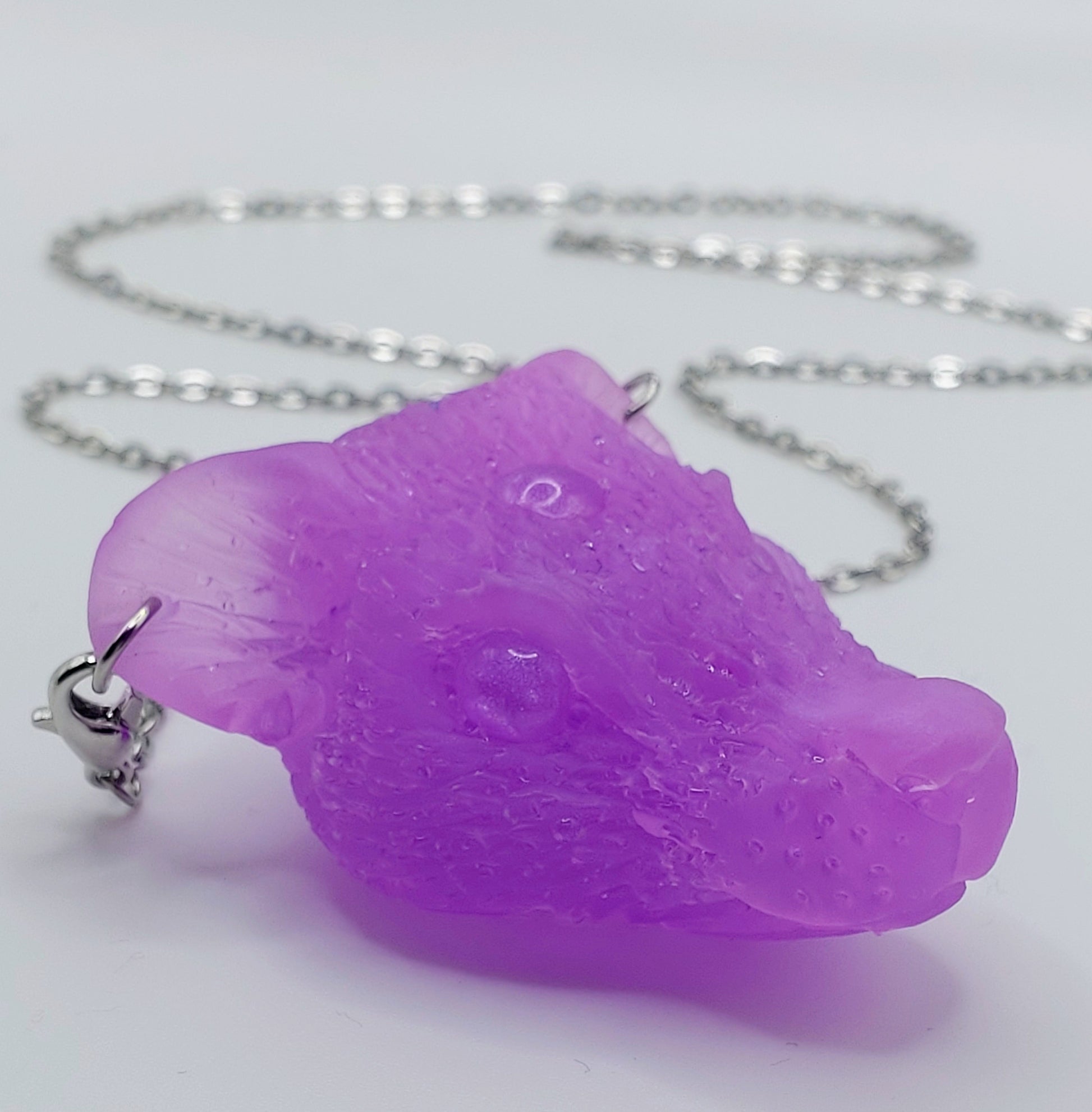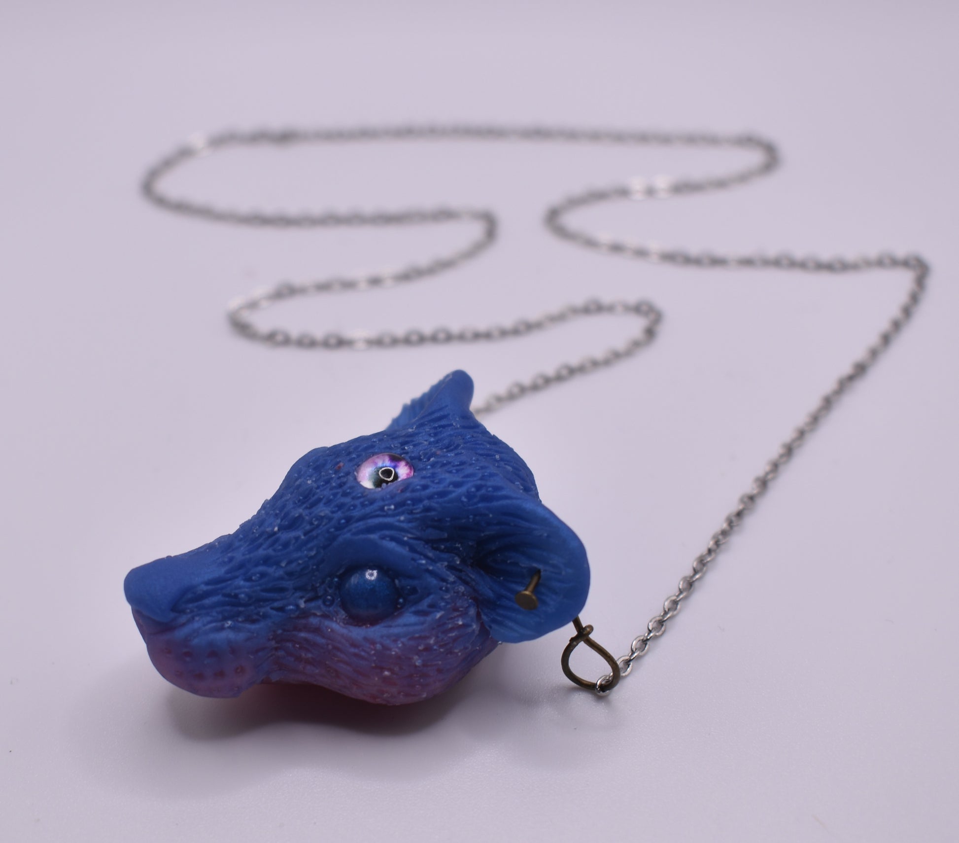All of bitprincess jewelry is one of a kind. She creates clay versions, makes a mold of the shape and casts it in resin. The result has finishing touches applied like sanding and adding a sterling silver chain and clasps or earring hooks. They are infused with her love for the craft and enthusiasm for you, the wearer!