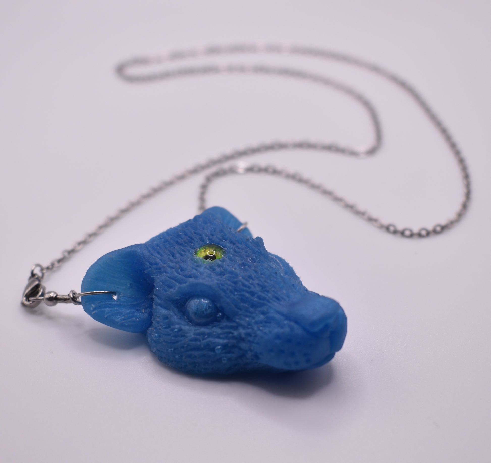 This Rat head represents cleverness, wealth and success. The rat often gets a bad name but as someone who used to have a pet rat I know just how sweet intelligent and loving they can be. They represent wealth and abundance as well because of their tendency to accumulate things they like <3 and if you are into spooky things as well they they can represent that too!