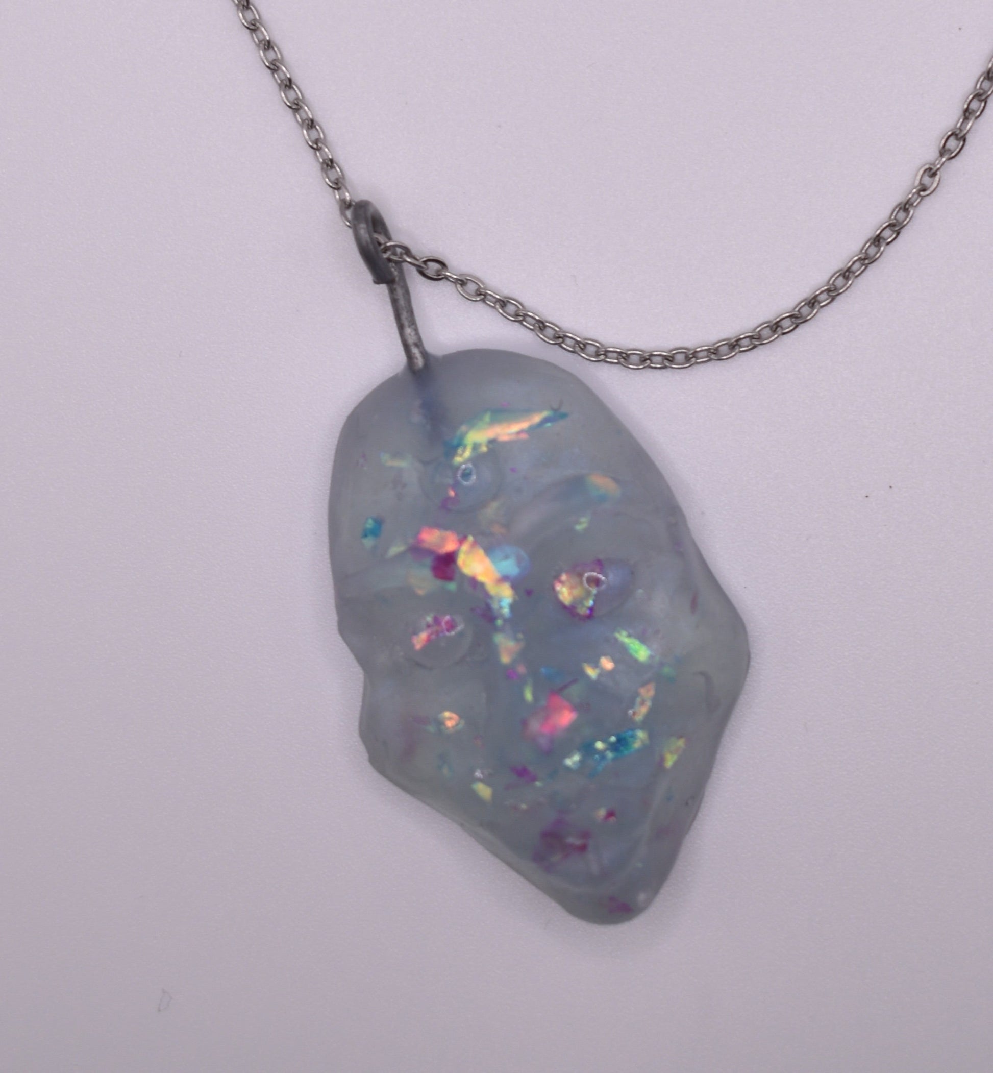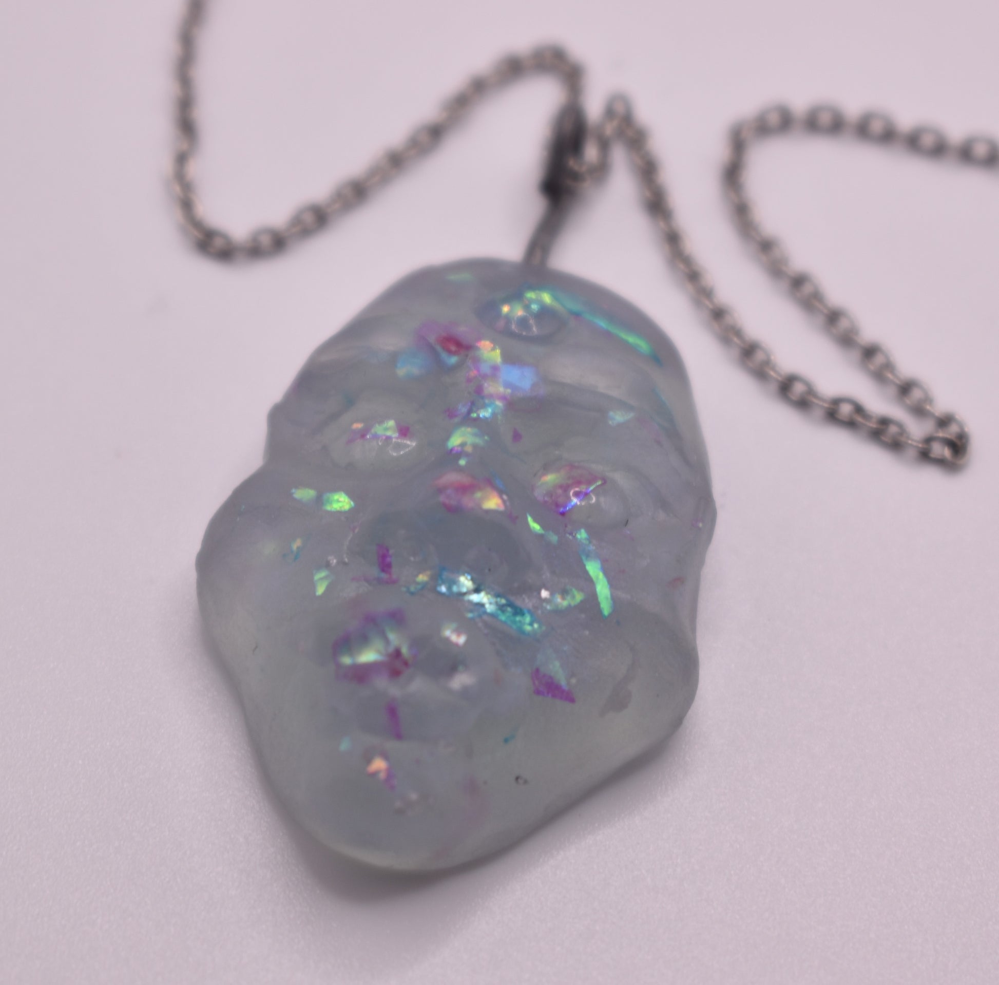 All of bitprincess jewelry is one of a kind. She creates clay versions, makes a mold of the shape and casts it in resin. The result has finishing touches applied like sanding and adding a sterling silver chain and clasps or earring hooks. They are infused with her love for the craft and enthusiasm for you, the wearer!